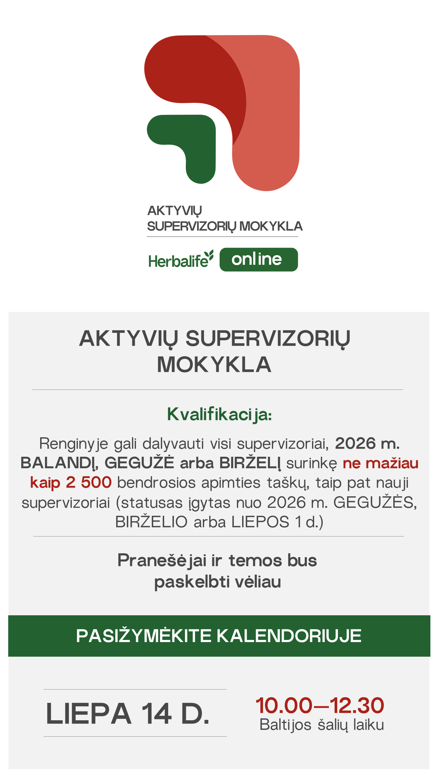 Aktyvių Supervizorių 5K pripažinimo programa 2026