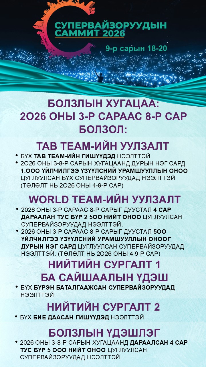Идэвхтэй Супервайзоруудыг Сайшаах Хөтөлбөр 2026